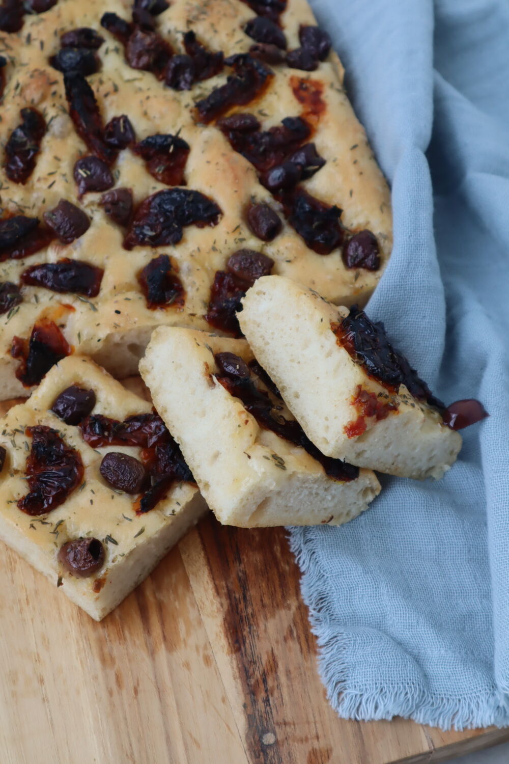 Focaccia met olijven en zongedroogde tomaten