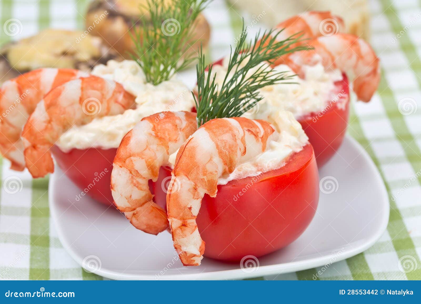 Gevulde Tomaten Met Garnalen Stock Foto - Image of koude, ontbijt: 28553442
